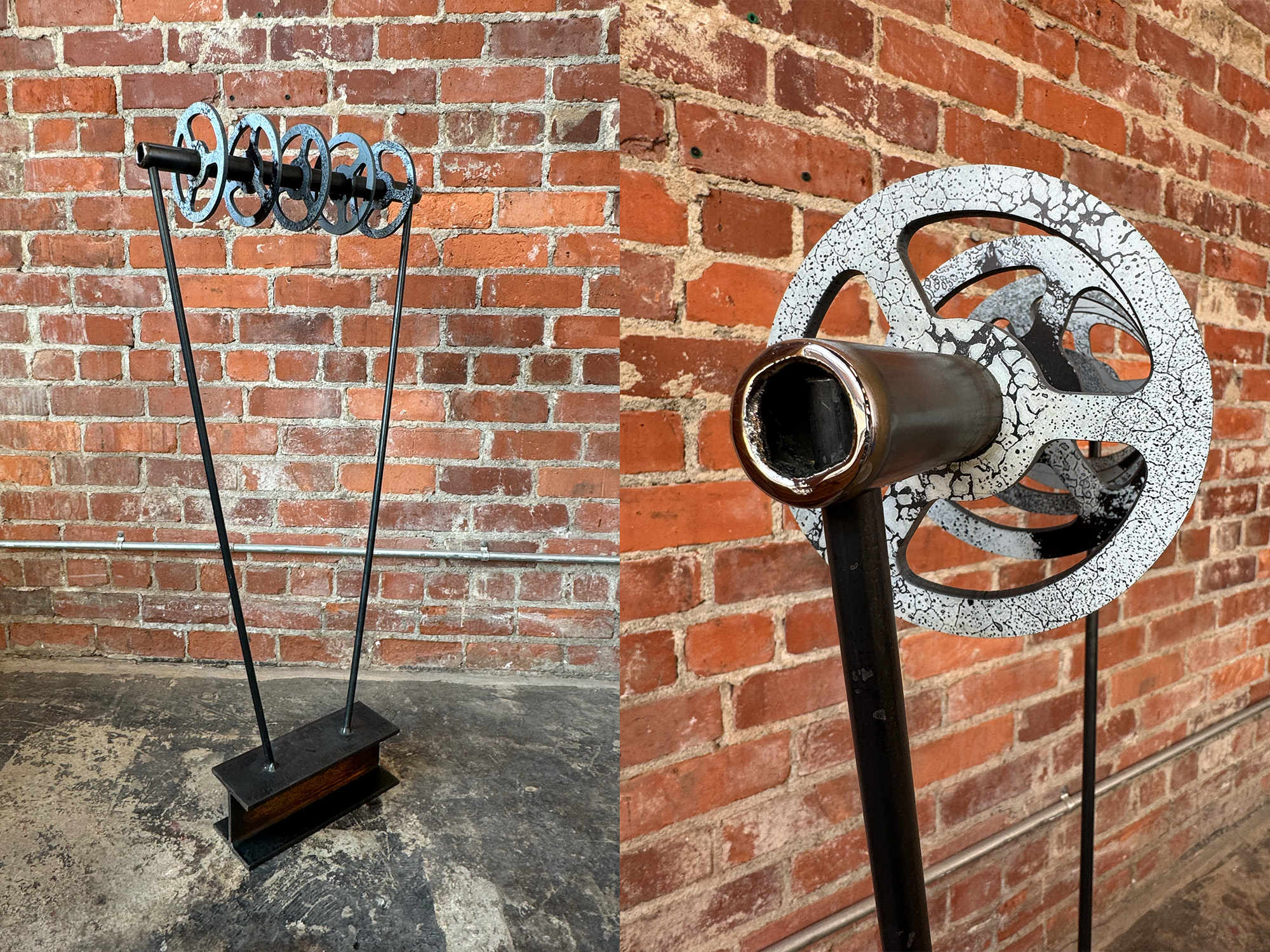 Alloy Orbit, 2025, UV print on plasma cut steel, 19.5” x 6” x 43”